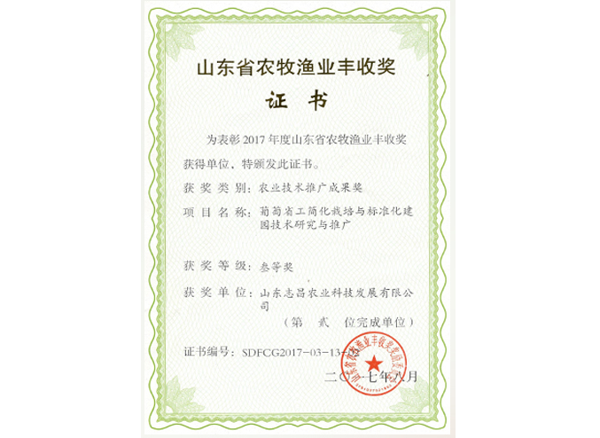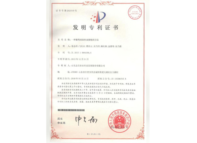 山東志昌農業科技發展股份有限公司自1984年創業至今已有四十年的發展歷程,是中國最早從事葡萄種苗研究的企業之一,主要從事葡萄等果樹分子生物育種、種苗繁育、產業規劃設計、技術研發與推廣、果品生產與加工、種苗出口、農業觀光旅游項目開發、農業標準編制的智慧農業高科技企業。公司通過了國家級高新技術企業認證、ISO9001國際質量管理體系認證,是“新四板”掛牌企業、中國產學研合作創新示范企業、山東省瞪羚企業、山東省新型研發機構、山東省“專精特新”中小企業、現代農業產業化龍頭企業。